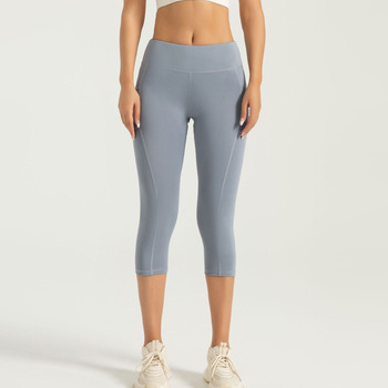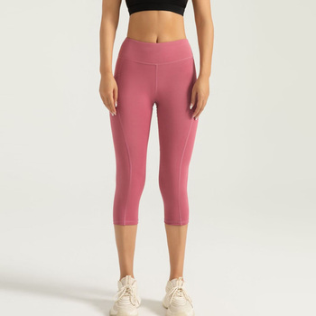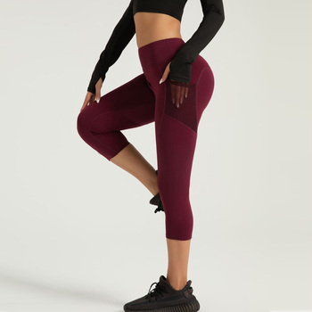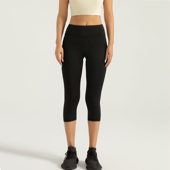 Quần legging Yoga 9 điểm nâng hông cạp cao Châu Âu Mỹ bán chạy nhất xuyên biên giới quần túi có nắp nối màu tinh khiết